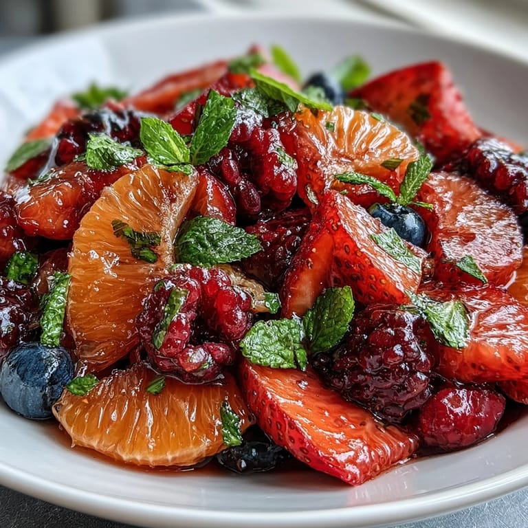 I used to make this salad in the morning thinking I was being efficient, but everything was room temperature by lunchtime and it lost that refreshing quality that makes people reach for seconds. Now I wait until about an hour before serving to assemble it, and I keep it in the coldest part of the fridge—the back corner where nobody puts leftovers. That chill makes the berries firm, the citrus juices feel bright on your tongue, and the mint stays perky instead of wilting.