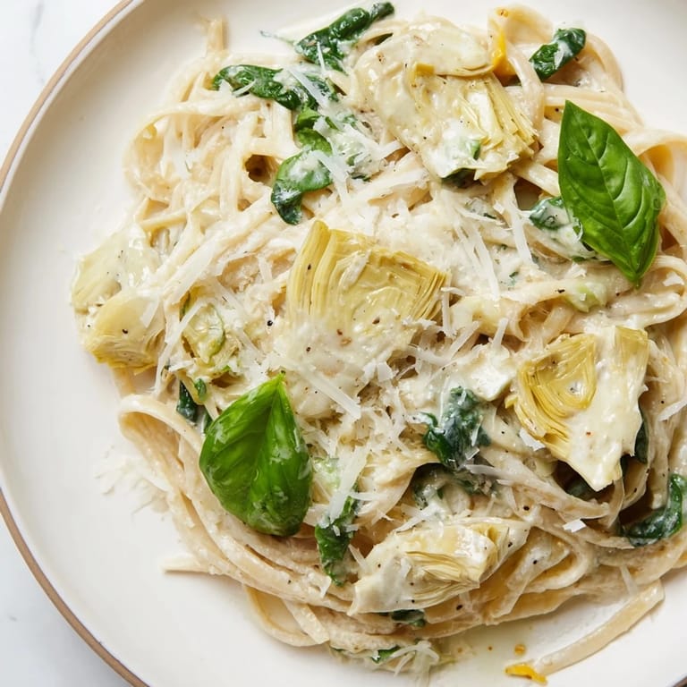 Save to Pinterest There's a particular kind of magic that happens when you're standing in your kitchen on a weeknight, craving something that feels both comforting and bright. That's exactly what drew me to this creamy lemon artichoke pasta, a dish that somehow manages to taste like you've been cooking all afternoon when really you're done in under forty minutes. I discovered it quite by accident, actually, grabbing a can of artichokes from the pantry and wondering what would happen if I treated them like they deserved to be the star. The combination of that silky cream with sharp lemon juice and tender artichokes became something I found myself making again and again, each time feeling a little more confident about the proportions.