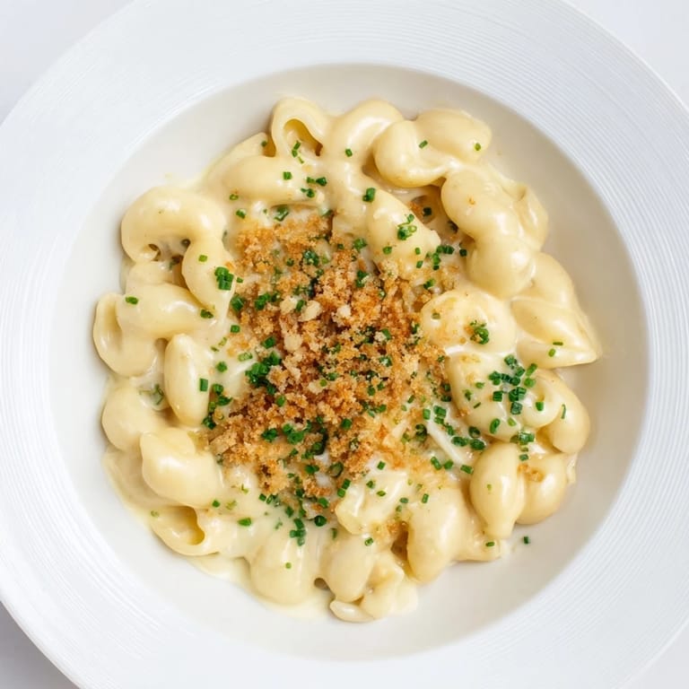 - Serve immediately, garnished with chives and toasted breadcrumbs if desired.