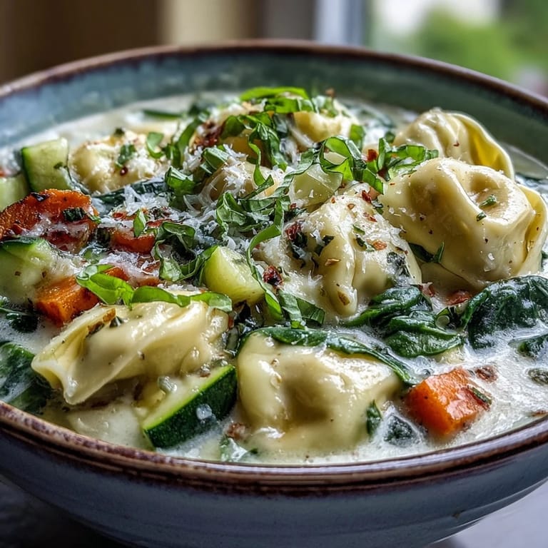 Save to Pinterest I stumbled upon this combination one rainy Tuesday when the pantry was looking suspiciously bare. There was half a bag of tortellini and some wilting celery in the crisper drawer. The result was so unexpectedly velvety that it quickly became my go to for gloomy weather. Now the sound of the vegetable peeler hitting the carrots always signals a cozy night ahead.