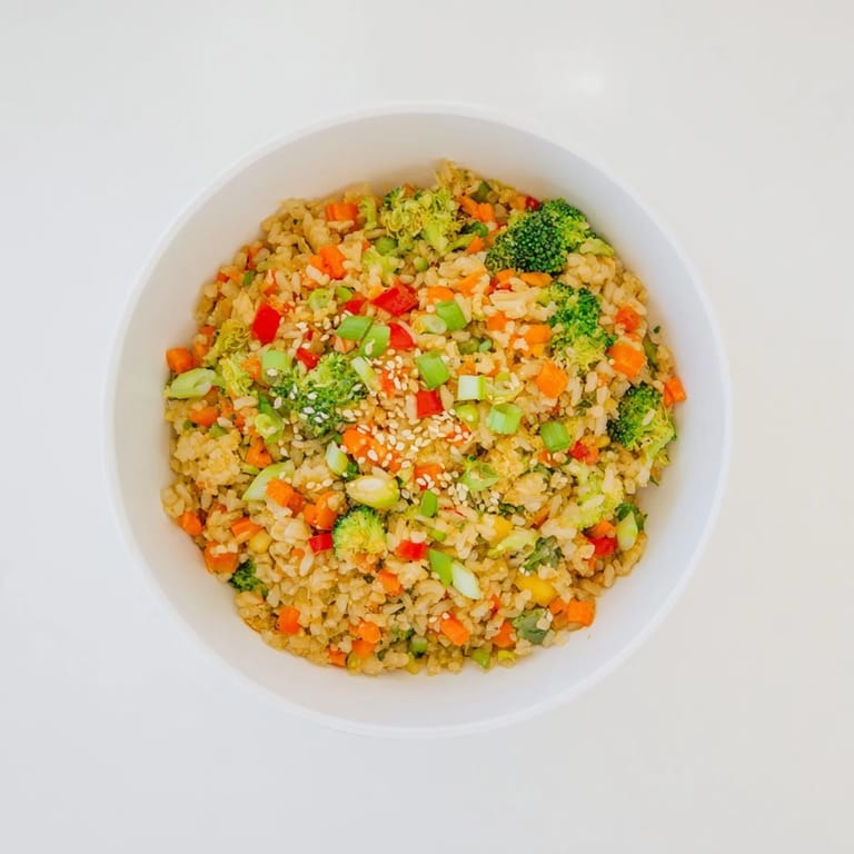 Save to Pinterest A vibrant, flavorful bowl featuring golden, crispy rice tossed with colorful sautéed vegetables and savory seasonings Perfect for a light yet satisfying supper