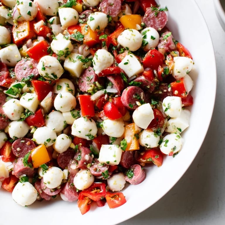 Save to Pinterest Last summer, my neighbor brought this salad to our block party and I found myself standing by the bowl, picking out all the crispy pepperoncini and salami cubes like I was treasure hunting. The combination hit every craving at once, salty, tangy, fresh, and somehow satisfying in that way only Italian-American antipasto flavors can be. I begged for the recipe right there between bites and have been making it weekly ever since.
