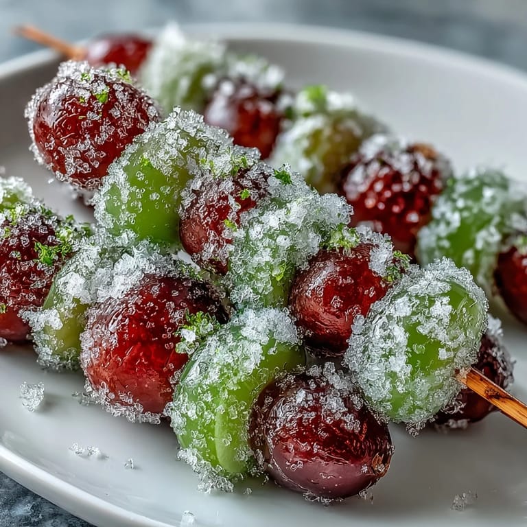 Save to Pinterest Frozen Grape Skewers with Lime Sugar offer the perfect balance of sweet and tart, creating a refreshing summer snack that's as easy to prepare as it is delightful to eat. Juicy grapes are transformed into a cool treat by freezing and then coated with fragrant, zesty lime sugar that adds a burst of citrus flavor. Whether you need a quick bite to cool off on a hot day or a simple yet impressive snack for entertaining guests, this recipe is a go-to choice that requires minimal effort but delivers maximum satisfaction.
