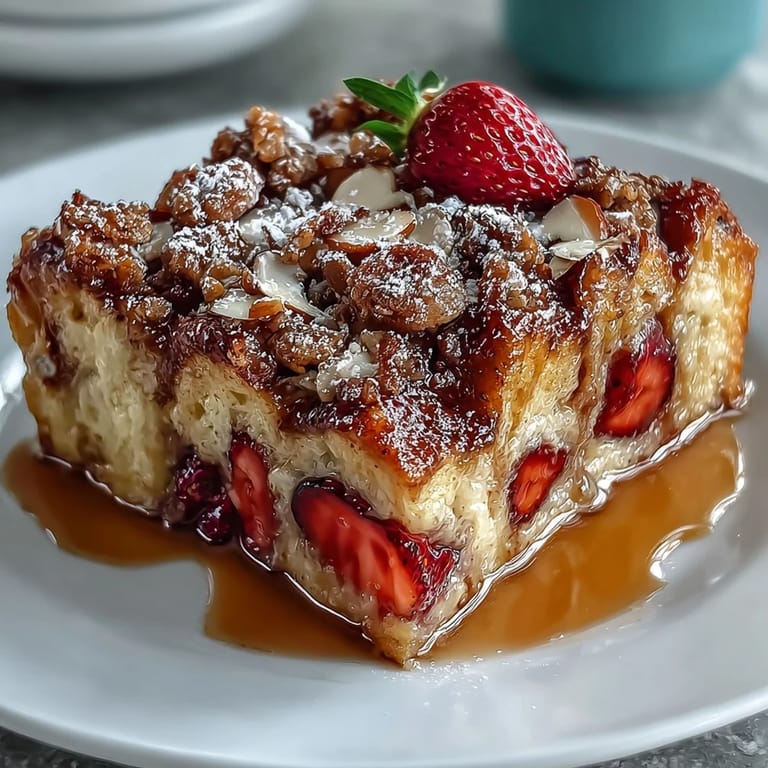 French toast as a casserole transforms from a dish you make one serving at a time into something communal and abundant, which changes its entire personality. The strawberries keep it from feeling heavy, their tartness cutting through the richness in a way that makes you want another bite. There's also something deeply satisfying about a recipe that tastes like you spent hours in the kitchen when you actually prepared it during a quiet evening at home.