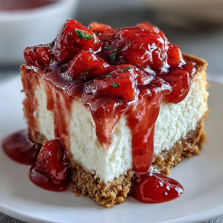 For those with dietary restrictions, substitute gluten-free graham crackers for the crust. You can also use fresh strawberries for the sauce; simply adjust the cooking time as needed. Adding a small splash of vanilla extract to the filling can further enhance the flavor profile.