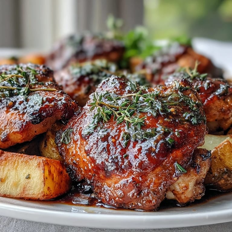 Save to Pinterest There's something wonderfully grounding about sliding a sheet pan into the oven and knowing dinner will practically make itself. My partner came home one Tuesday evening exhausted, and I had exactly thirty minutes before we both needed to eat something real. I grabbed chicken thighs because they never disappoint, tossed them with whatever vegetables looked promising, and mixed up a quick glaze that smelled like autumn even though it was June. The kitchen filled with this golden, honeyed aroma that somehow made everything feel intentional, like I'd planned it all along.
