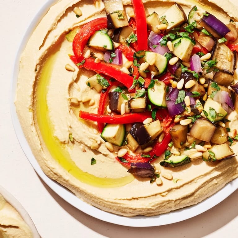 Save to Pinterest There's something magical about the first time you taste hummus that's been whipped into clouds instead of blended into submission—it happened to me at a tiny Mediterranean restaurant where the owner's grandmother was stirring it in the kitchen, and I watched her catch me staring. She handed me a spoon, smiled, and that's when I understood: hummus wasn't meant to be dense or heavy, but almost alive, crowned with vegetables that had blistered under heat until they sang. I've been chasing that moment ever since, and this version, with its charred roasted vegetables and toasted pine nuts scattered across creamy, whipped chickpeas, is as close as I've gotten.