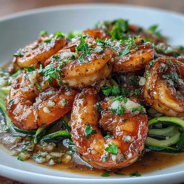 Save to Pinterest Succulent shrimp sautéed in a rich garlic butter sauce, served over fresh zucchini noodles for a light, keto-friendly meal bursting with flavor. This quick and easy recipe brings together fresh seafood and vibrant vegetables in under 30 minutes.