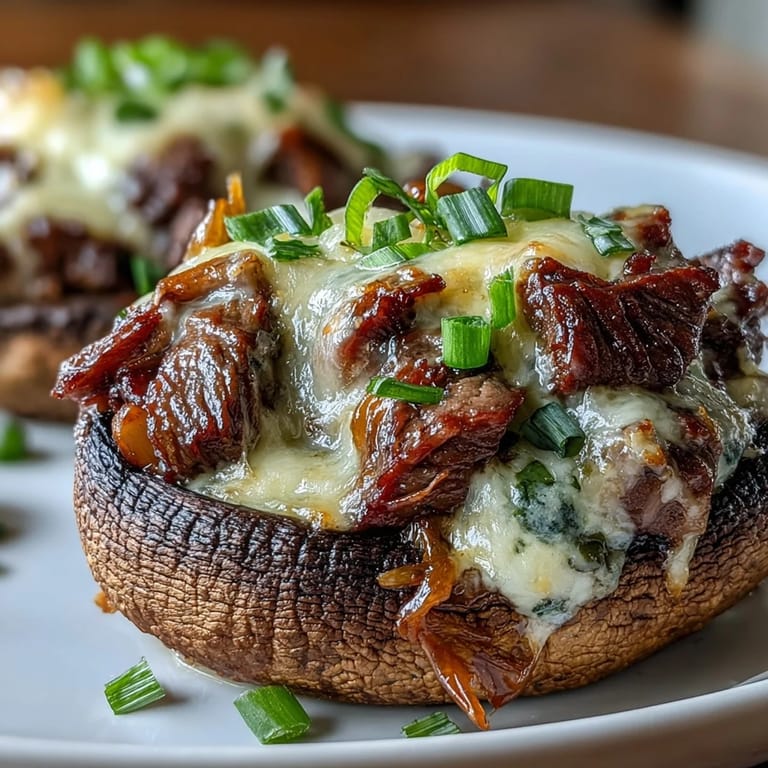 Save to Pinterest Last spring, I was scrolling through my phone at lunch when a coworker mentioned she'd given up bread but couldn't live without her Philly cheesesteak. That comment stuck with me for weeks. I started wondering what would happen if I took everything that makes that sandwich sing—the tender steak, the caramelized peppers, the molten cheese—and nestled it inside something unexpected. One quiet Friday night, I pulled out four meaty portobello caps and discovered something almost better than the original.
