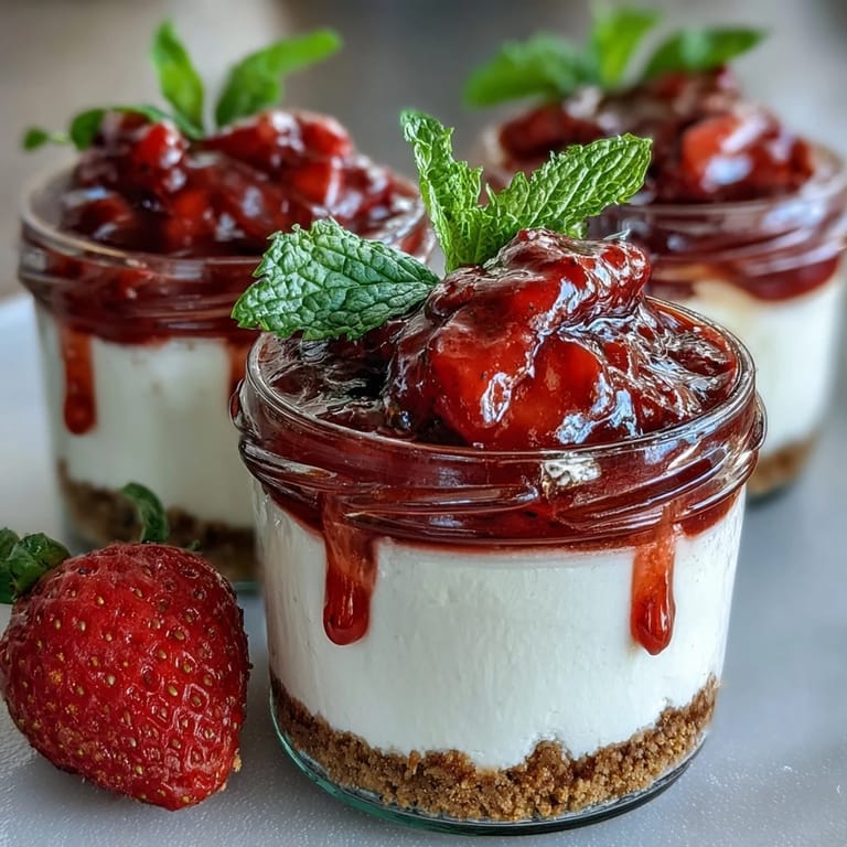 Save to Pinterest These jars provide a delightful balance of textures and flavors—from the crumbly, buttery base to the smooth cheesecake and the fruity topping. Ideal for parties or a quiet moment of indulgence, this recipe brings the joy of fresh strawberries paired with creamy cheesecake without the fuss.