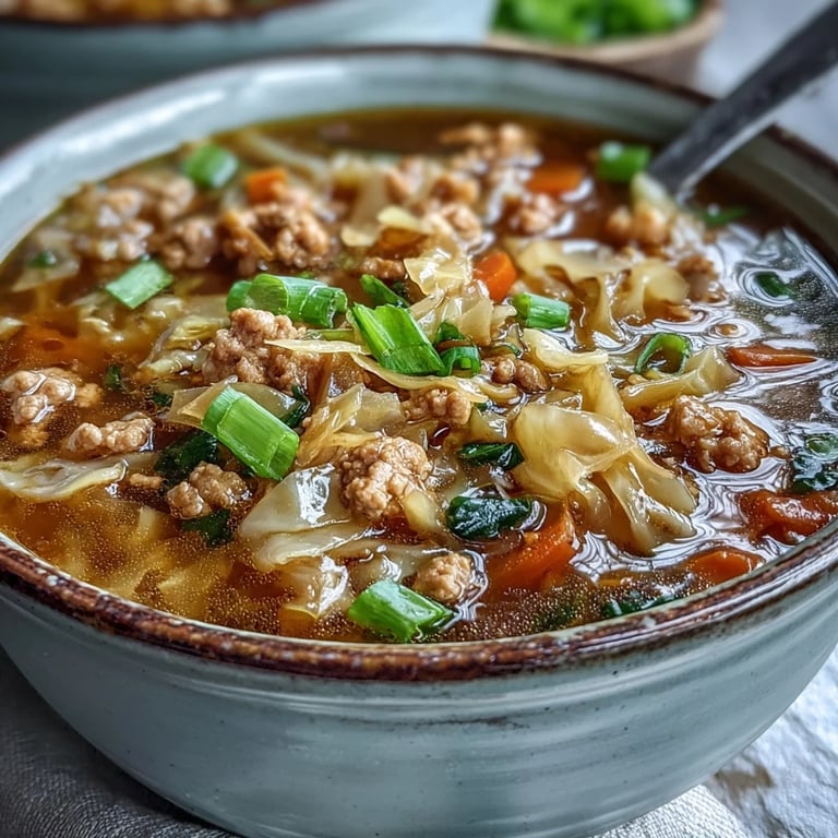 Save to Pinterest The first time I made this soup, it was snowing outside and I was craving something that felt like an egg roll but didn't require frying or rolling anything. My kitchen smelled like ginger and sesame oil within minutes, and I knew I was onto something special. The way the ribbons of egg swirl through the broth reminds me of the technique my grandmother used for her classic egg drop soup, but this version feels more substantial, more like a meal.