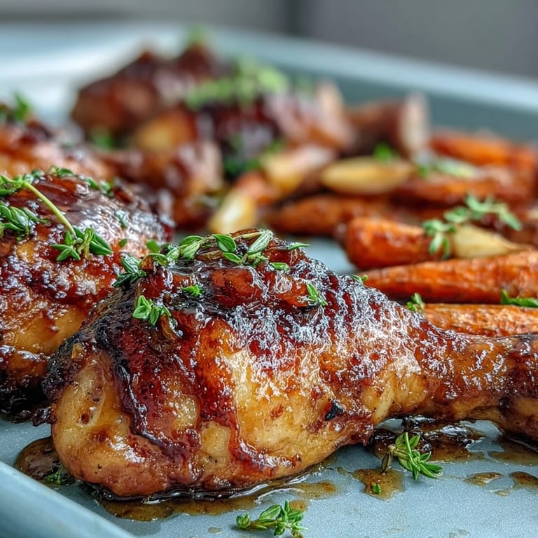 Save to Pinterest There's something about a sheet pan that makes cooking feel less like a chore and more like a magic trick. One weeknight, I pulled out chicken drumsticks, some carrots, and a jar of honey, thinking I'd throw together something quick before my sister stopped by. What emerged from the oven was so glossy and golden that she asked if I'd been secretly attending cooking classes. The answer was simpler: a sticky-sweet glaze, high heat, and the kind of alchemy that happens when honey and garlic meet caramelized carrots.