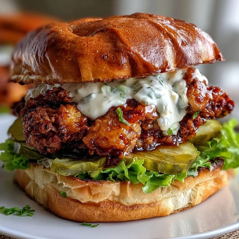 Save to Pinterest My kitchen smelled like a county fair the first time I cranked the heat too high and watched my chicken turn dark before it cooked through. I learned fast that a thermometer isn't optional, it's survival. Now, every time I drop a piece into shimmering oil and hear that confident sizzle, I know I've got it right. This sandwich isn't delicate or apologetic. It's loud, messy, and worth every napkin.