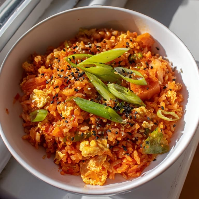 Save to Pinterest My roommate burst through the kitchen door one weeknight with a container of kimchi from a Korean market downtown, insisting I had to learn this one dish that could save my life on busy nights. Twenty minutes later, I understood the hype—the way gochujang blooms in hot oil, how leftover rice transforms into something vibrant and alive, and why this became the recipe I reach for when I need something bold but don't have time to fuss. It's the kind of meal that tastes like you've been cooking all day, even though you haven't.