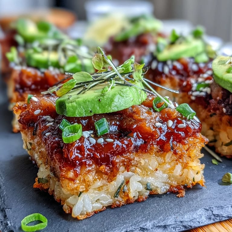 Save to Pinterest The day I finally nailed crispy, golden rice was the day this dish went from experiment to showstopper. I still think about how proud I felt plating up every perfect square, each one promising a bite of heat, crunch, and creaminess that seemed to surprise everyone who tried it.