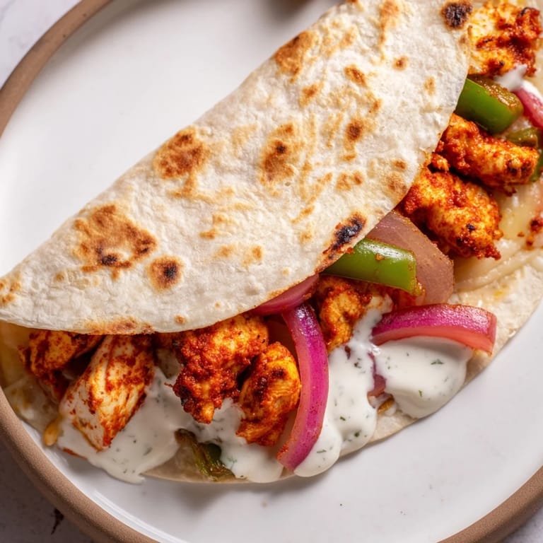 - Lay a tortilla flat, sprinkle a quarter of the cheese over just one half, then add a quarter of the warm chicken on top. Layer some raw onion and bell pepper slices, then drizzle lightly with the yogurt sauce. Fold the tortilla in half gently—you don't want to squeeze out all the filling.